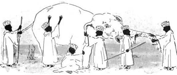 El elefante simboliza la realidad en su complejidad. Cada parte que los ciegos tocan representa una faceta de esta realidad, pero ninguna permite una comprensión completa. La metafora nos confronta con nuestra propia limitación en la comprensión del mundo. Es una crítica sutil a la tendencia a imponer una única verdad, desestimando otras perspectivas.